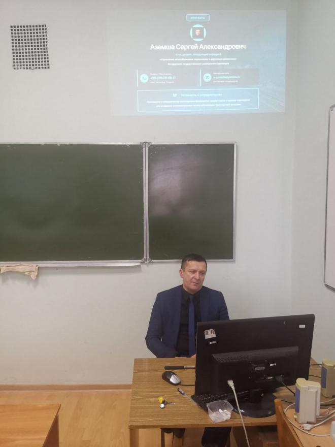 29 января 2026 года, в рамках сотрудничества на базе межкафедральной научно-исследовательской лаборатории «Математика гибридных интеллектуальных систем», состоялась встреча с заведующим кафедры «Управление автомобильными перевозками и дорожным движением» Белорусского государственного университета транспорта Аземша Сергеем Александровичем. Встреча была посвящена обсуждению интеграции инфраструктурных ограничений в мультимаршрутный метод организации пассажирских перевозок и оптимизации транспортной логистики через интеллектуальные технологии.